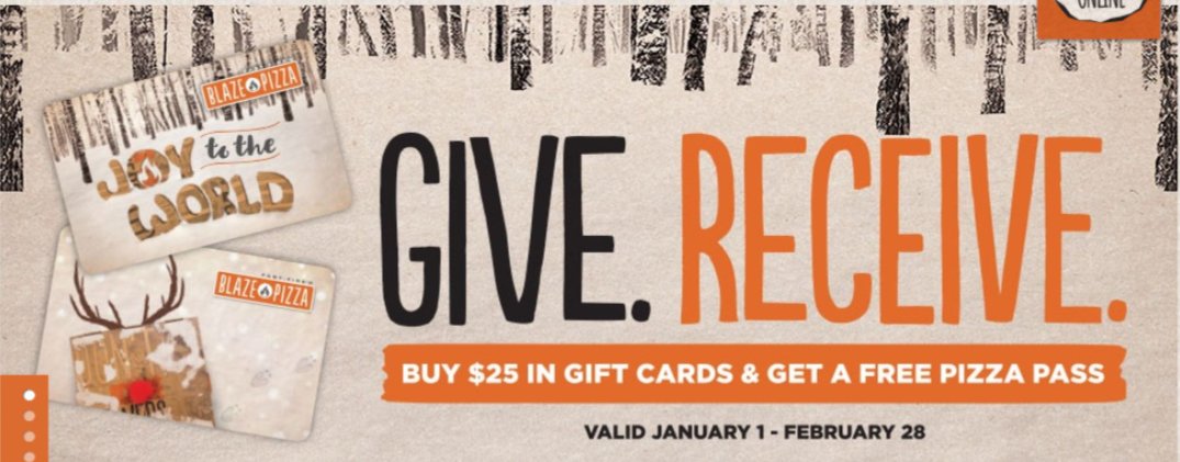 Blaze Pizza, один из лидеров рынка быстрой пиццы, запустила кампанию #ПодарочнаякартаBlaze в социальных сетях среди своих 2,4 млн подписчиков. В рамках этой акции тот, кто покупает подарочную карту на $25, получает бесплатную пиццу при следующей покупке. Даниэла Симпсон, генеральный менеджер отдела цифрового развития и руководитель отдела маркетинга компании Blaze, отметила, что продажи подарочных карт превысили ожидания. Подарочные карты могут быть сложны с точки зрения бухгалтерского учета и выхода на рынок. Но вспомните, что у Starbucks есть 25 млн мобильных пользователей, которые предварительно загружают наличные деньги на свои бонусные карты в качестве беспроцентного кредита. В совокупности это обеспечивает Starbucks более чем $1 млрд оборотного капитала. Почему бы и другим компаниям это тоже не попробовать?