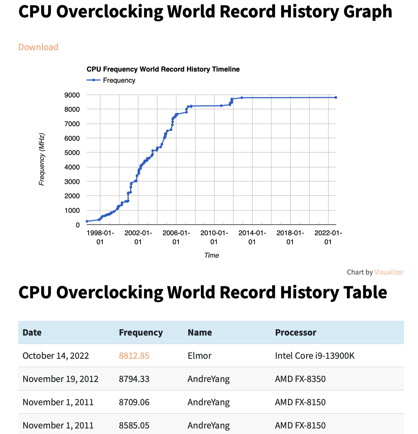 По данным skatterbencher, в последний раз она приближалась к 8,8 ГГц в 2012 году, когда AMD FX-8350 создала частоту 8794,33 МГц.