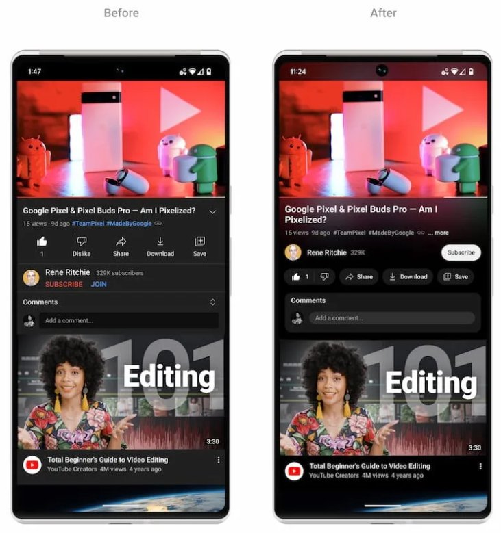 Ссылки на YouTube в описаниях видео теперь будут отображаться в виде кнопок. Служба переработала общие действия, такие как «Нравится», «Поделиться» и «Загрузить», чтобы «свести к минимуму отвлекающие факторы». Кроме того, кнопка подписки будет выглядеть по-новому — вместо прямоугольника она будет иметь форму таблетки. Хотя кнопка больше не будет красной, YouTube предполагает, что высококонтрастный редизайн поможет ей больше выделяться на страницах просмотра и страницах каналов.