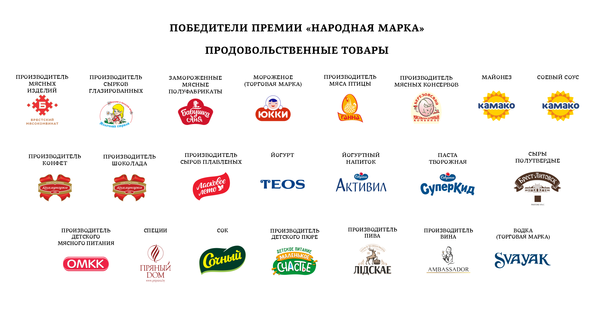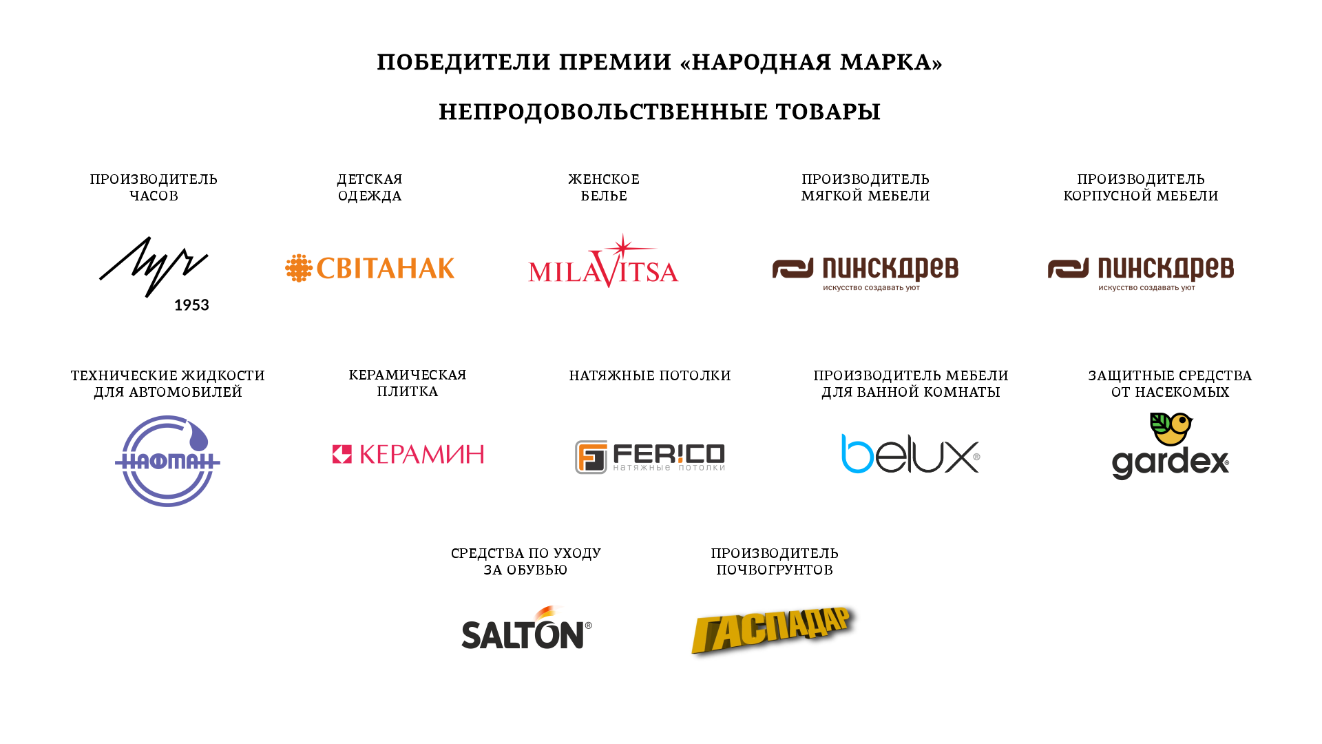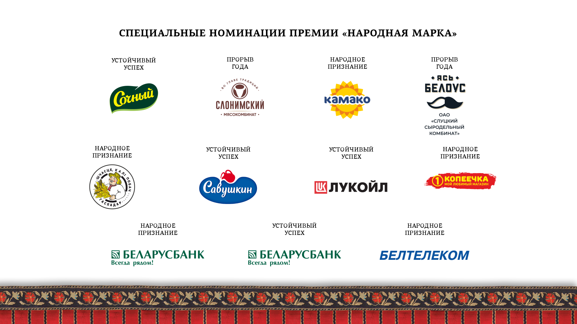 Уже в течение десяти лет в большинстве номинаций Премии лидируют марки, произведенные в Беларуси, а сильные бренды-лидеры завоевывают доверие своих потребителей, ежегодно подтверждая статус «Народная Марка».