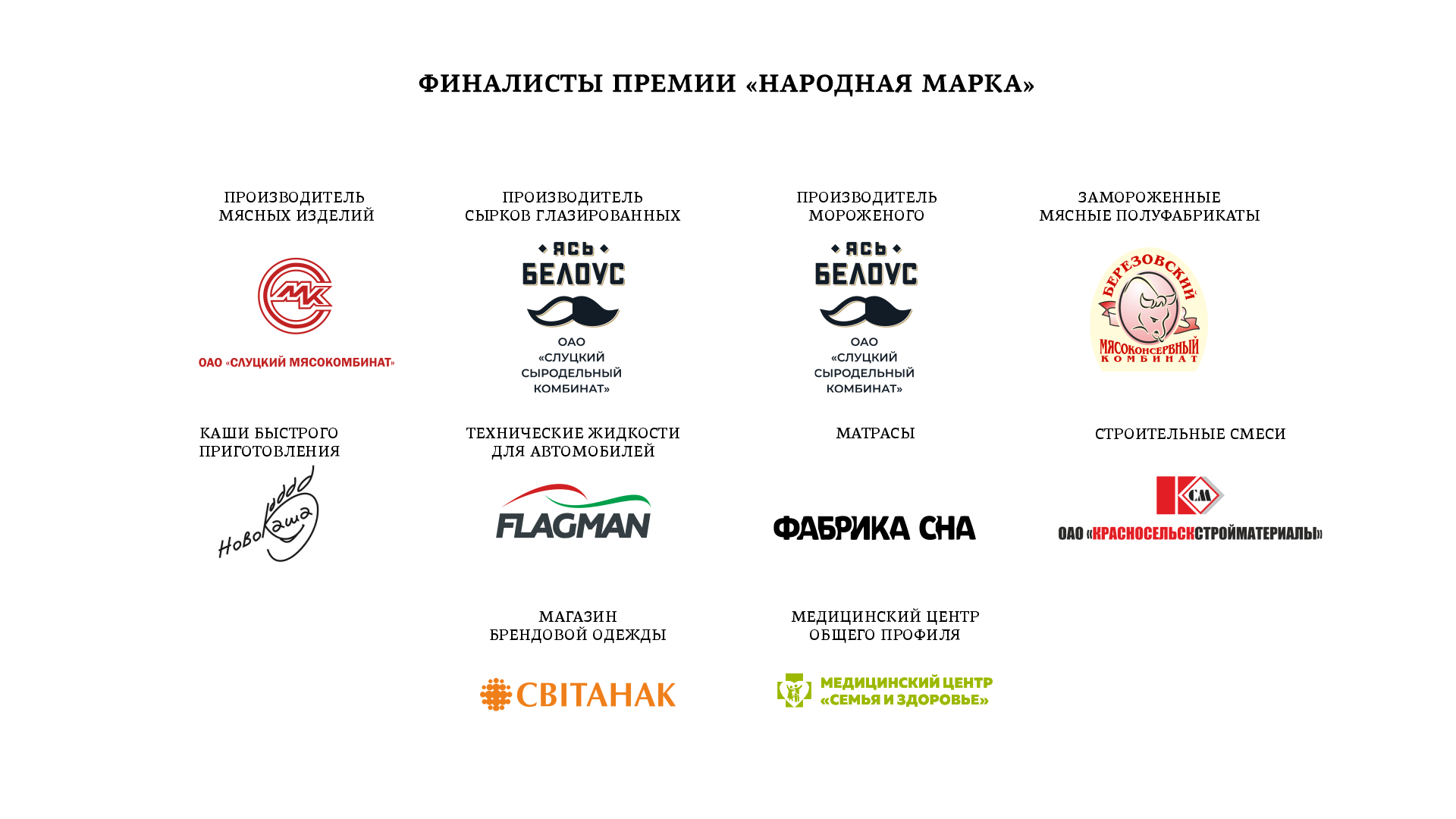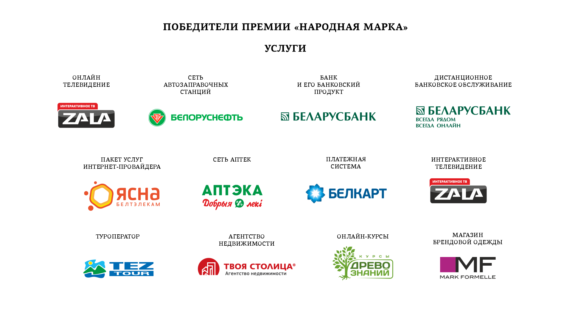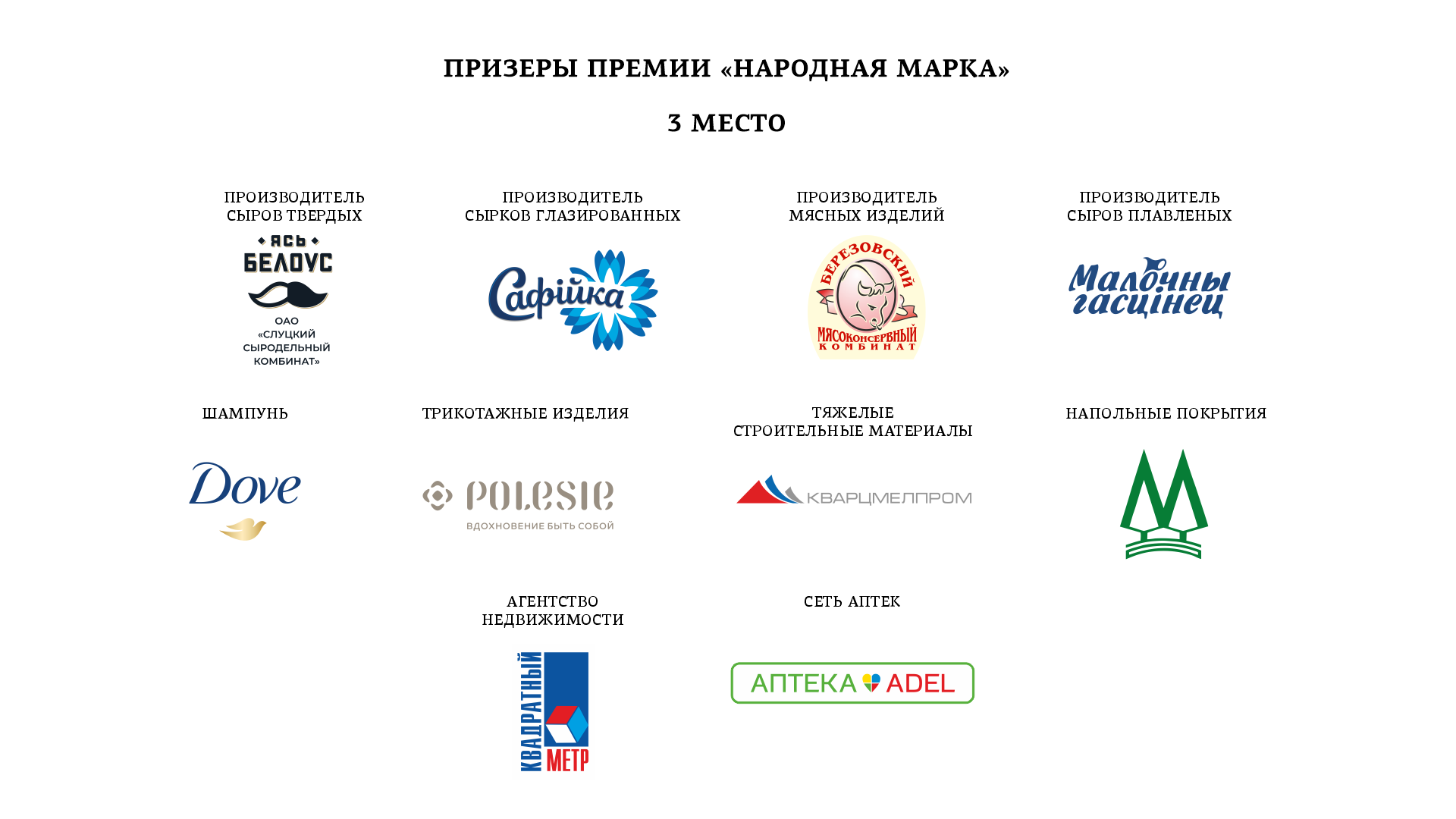 Уже в течение десяти лет в большинстве номинаций Премии лидируют марки, произведенные в Беларуси, а сильные бренды-лидеры завоевывают доверие своих потребителей, ежегодно подтверждая статус «Народная Марка».