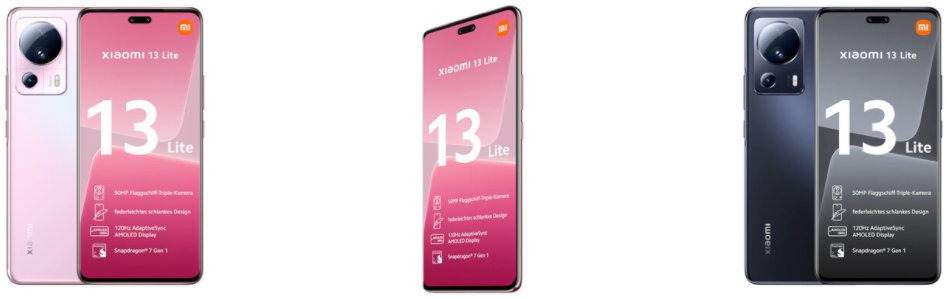 Xiaomi 13 Lite должен появиться в черном, синем и розовом цветах, однако Cyberport пока что "слил" только черный и розовый варианты устройства.