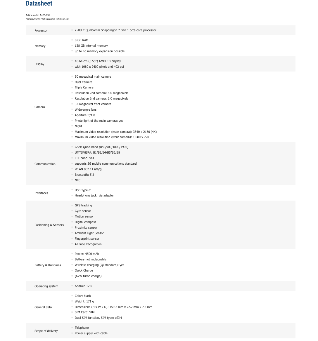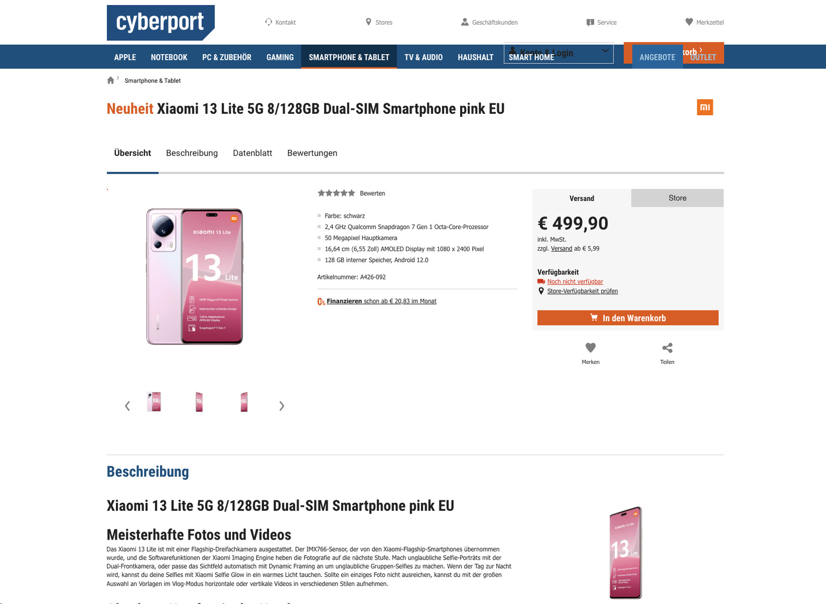 Как и ожидалось, Xiaomi 13 Lite с 8 ГБ оперативной памяти и 128 ГБ встроенной памяти будет стоить 499 евро. По общему мнению, Xiaomi также будет продавать вариант с 256 ГБ за 549 евро, хотя на момент публикации мы не смогли найти никаких подтверждений этому как на Cyberport, так и где-то еще. Несмотря на это, два опубликованных списка подтвердили наличие Snapdragon 7 Gen 1, который еще не устанавливается в большинстве телефонов.