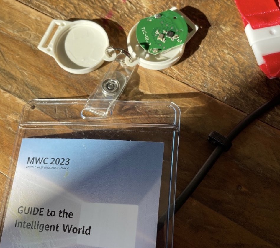 Посетители Huawei на MWC 2023 должны были иметь при себе вышеупомянутый значок при посещении выставки, который состоял из непосредственно значка и ремешка, а также небольшого пластикового контейнера. Они должны были вернуть пропуск при выходе со стенда, но некоторые забыли это сделать.