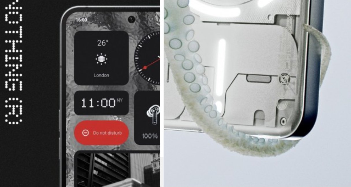 Задняя панель свидетельствует, что новый телефон сохранит базовый дизайн своего предшественника с открытыми прозрачными пластиковыми элементами и фирменным интерфейсом Glyph со светодиодами для уведомлений. Ожидается, что алюминиевые стороны Nothing Phone (2) будут слегка изогнутыми, а не плоскими, как показано в новом тизере.
