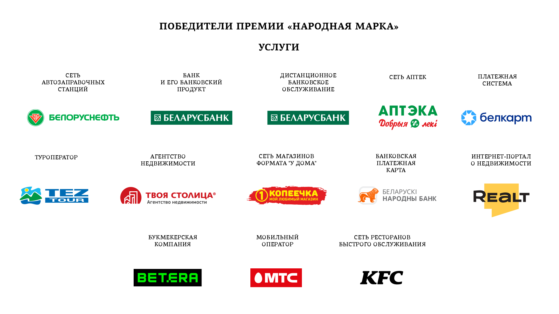 Вопросы в голосовании Премии открытые, жители страны сами могли отдать свои голоса любимым торговым маркам и брендам в различных категориях без подсказки, что демонстрирует спонтанное знание брендов и показывает народное признание. Примечательно, что в течение многих лет победителями в большинстве номинаций становятся товары и услуги от беларуских производителей. Беларуские потребители искренне поддерживают отечественные бренды, отдавая за них свои голоса. И это не удивительно, из года в год качество товаров и услуг растет, что и подтверждают ежегодные награды в Премии.