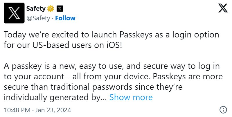 X присоединился к моде на использование ключей доступа, теперь позволяя пользователям iOS на iPhone и iPad применять эту изящную функцию безопасности независимо от того, используют ли они бесплатную или премиальную версию X. В настоящее время X доступен в США, но не раскрыл сроки распространения этой функции на Android или другие страны.