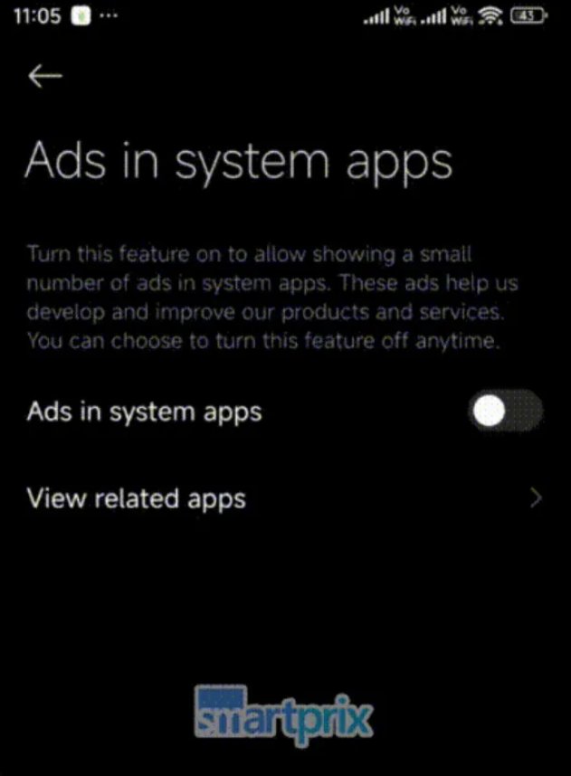 SmartPrix и Йогеш Брар обнаружили, что Xiaomi работает над единым переключателем для отключения системной рекламы в своем скине HyperOS Android. Издание опубликовало GIF-изображение, показывающее переключатель «реклама в системных приложениях», доступный через меню настроек.