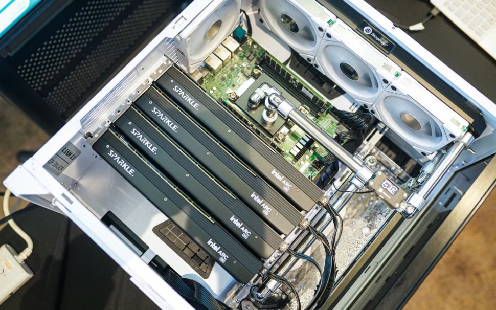 Intel работает с OEM-производителями, чтобы вывести на рынок машины Project Battlematrix, и это основной способ найти Arc Pro B60. Партнеры Intel по производству плат имеют большую свободу действий в своих проектах для B60 — например, у Maxon есть модель с двумя GPU, которую они выпускают — поэтому для карты нет прайс-листа.