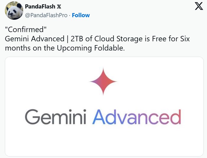 Источник утечек также заявил, что Galaxy Z Fold7, Z Flip7 и Z Flip7 FE также будут поставляться с Gemini Advanced плюс 2 ТБ облачного хранилища бесплатно в течение шести месяцев.